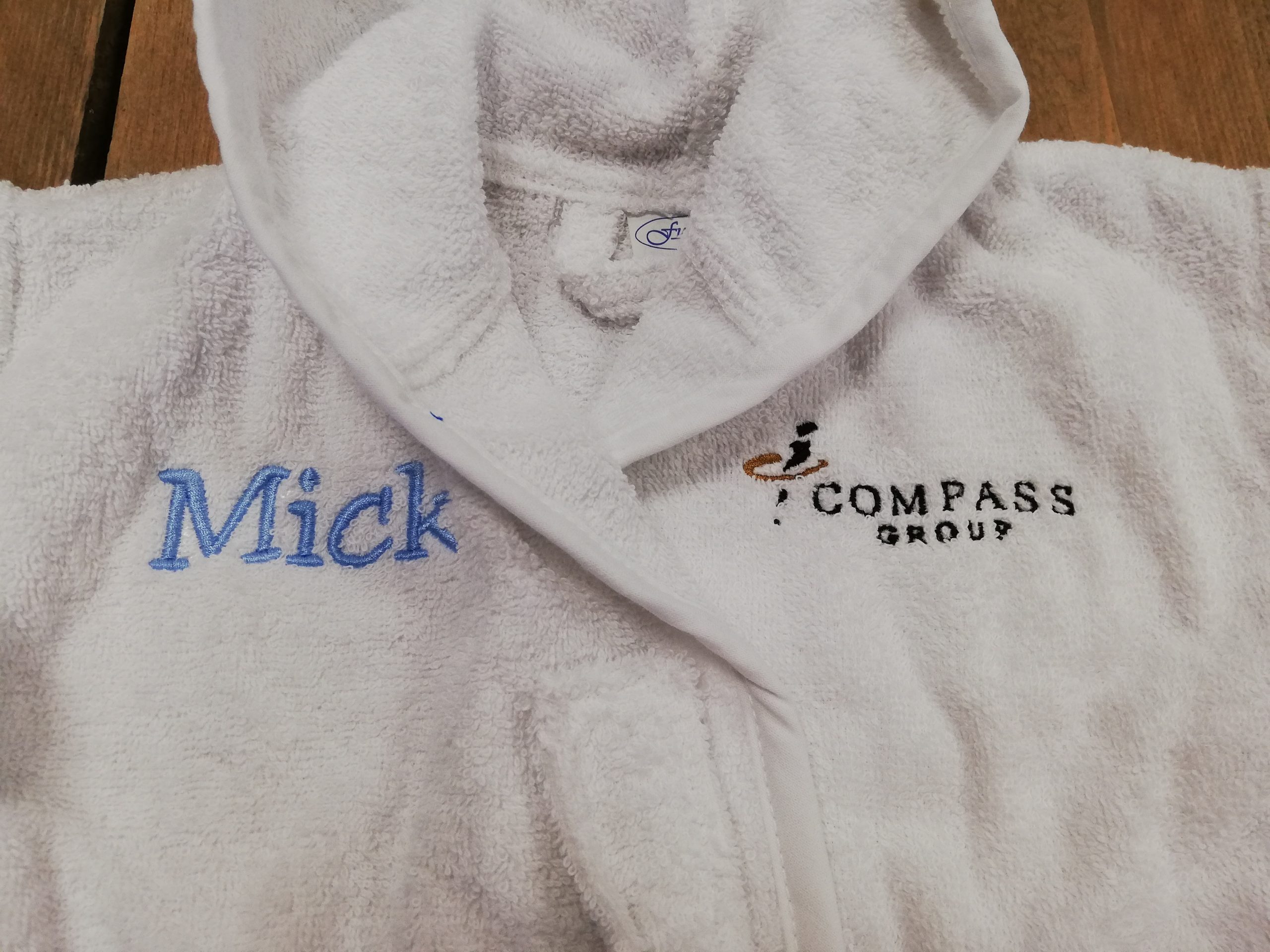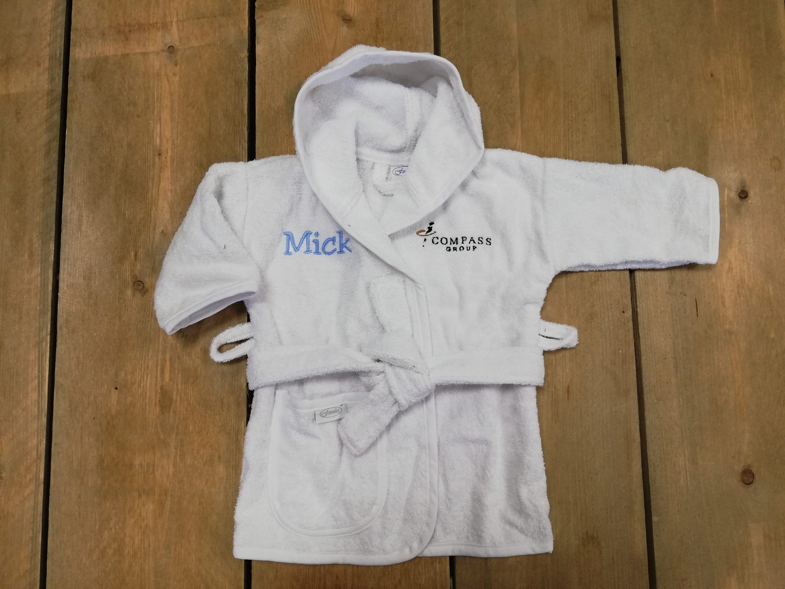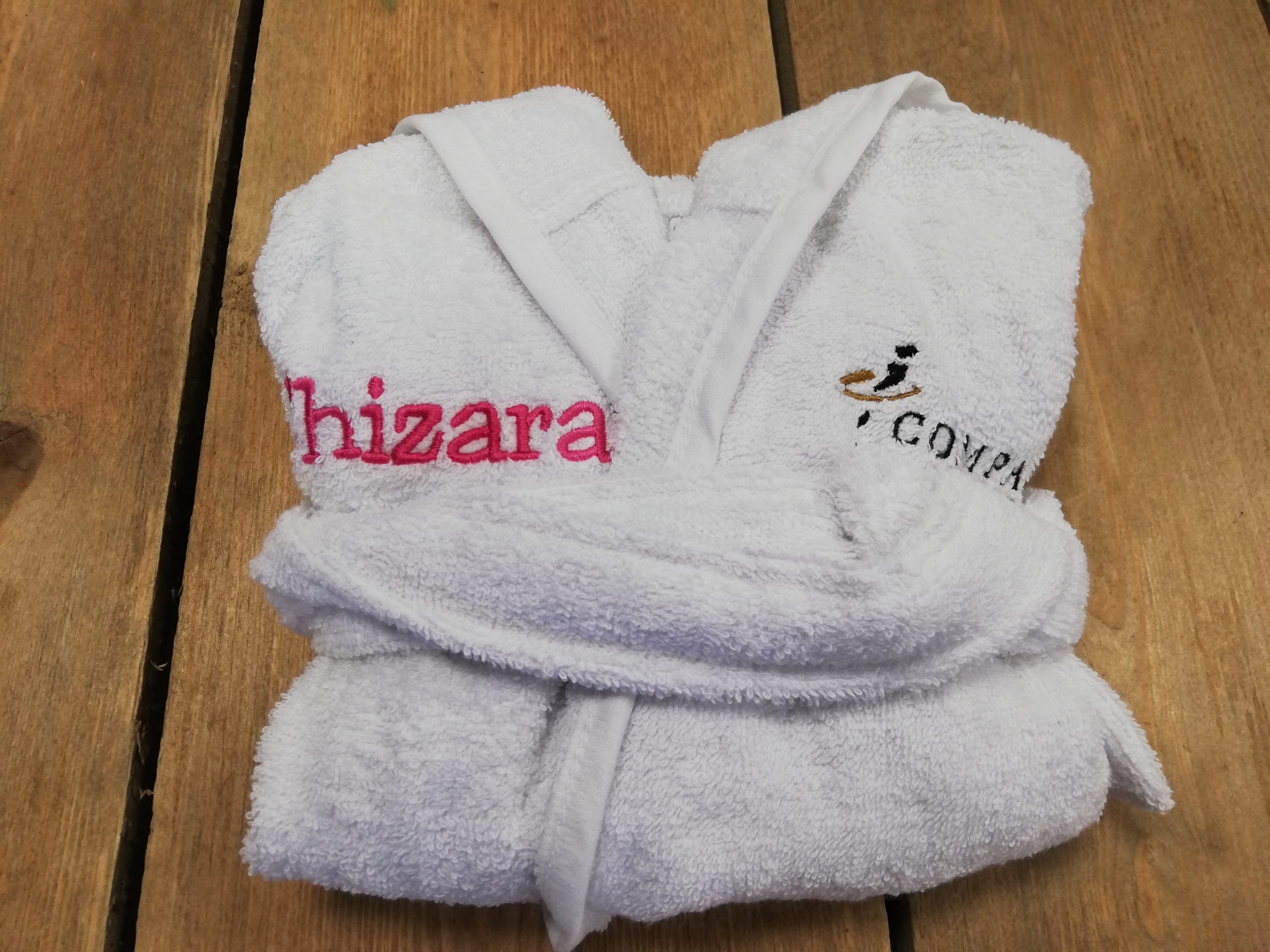 Badjasje met logo Compass en naam.