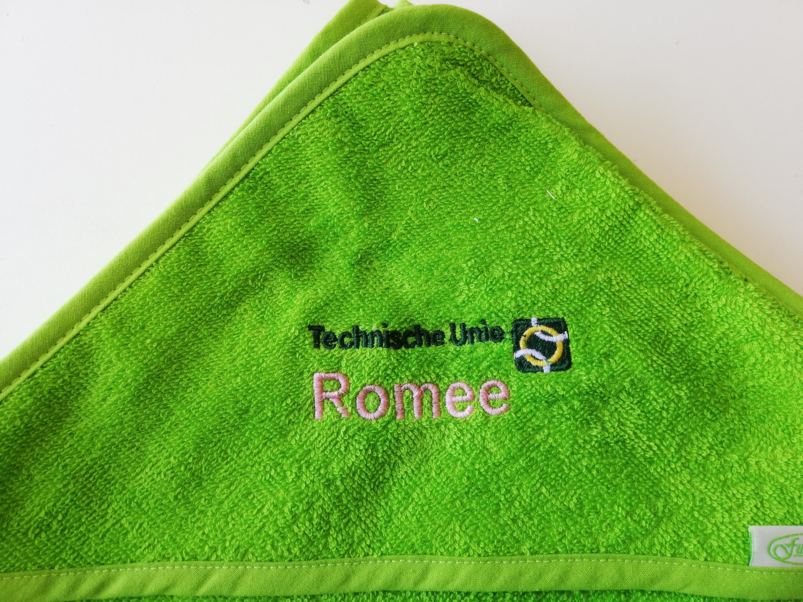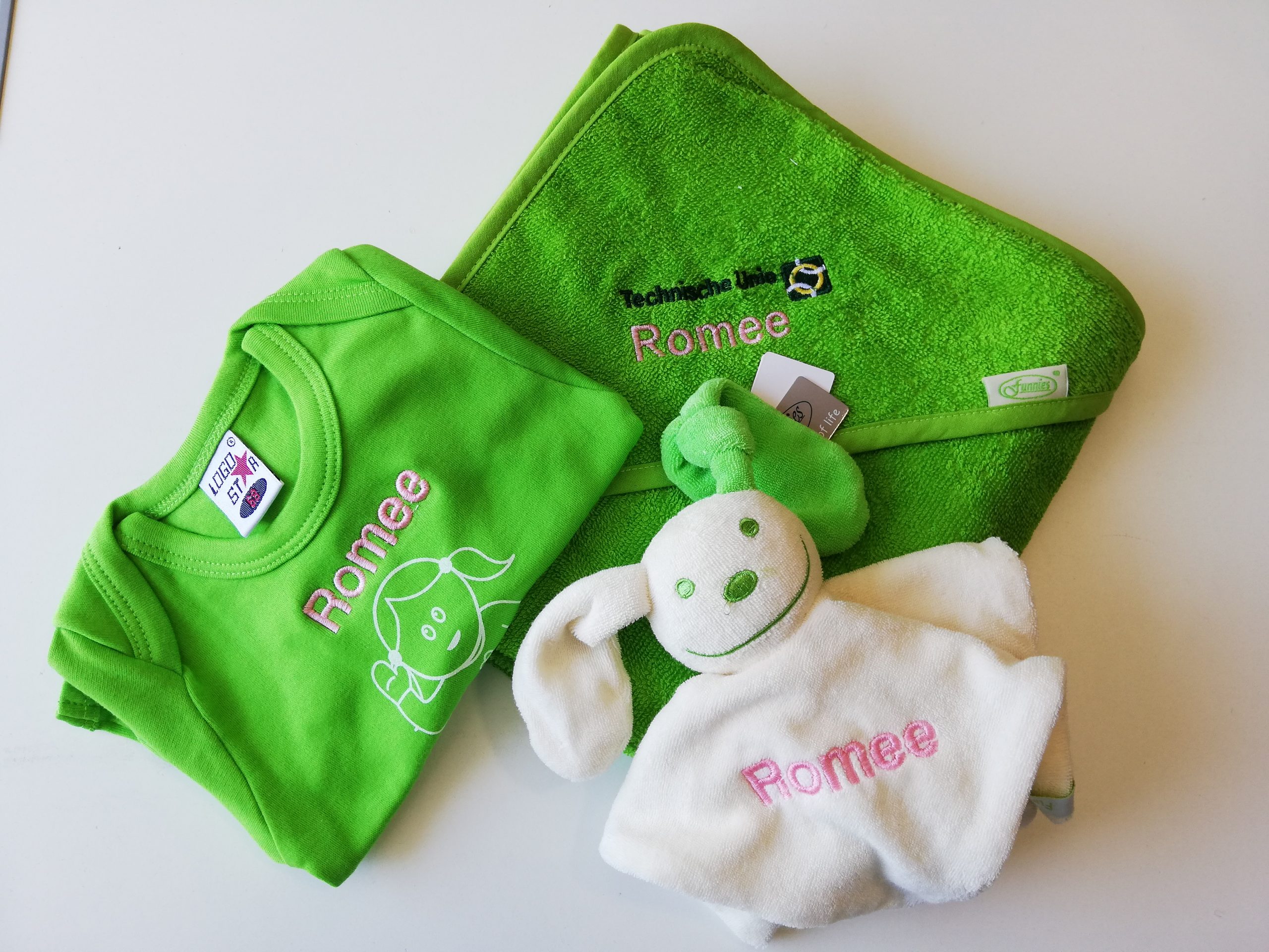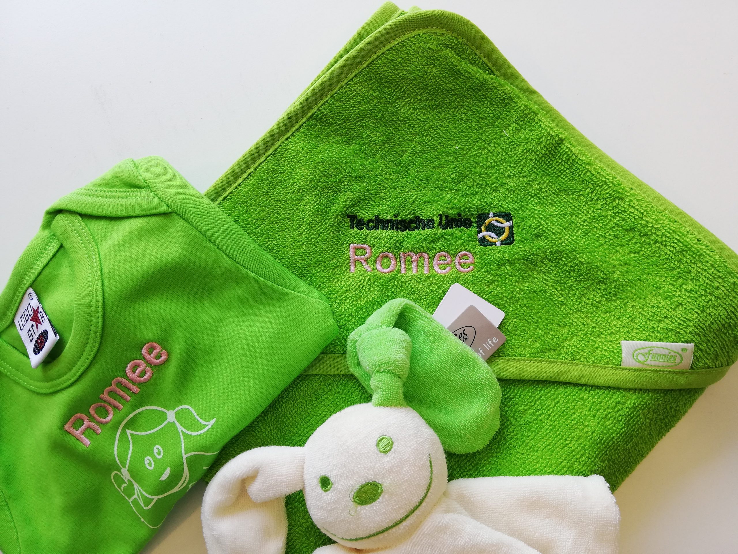 In dit pakket zit een badcape ( TU logo erop ), Romper en een tut popje.